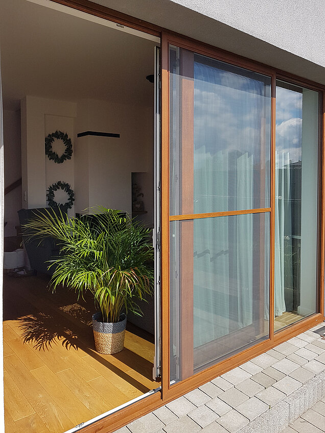Moskitiera drzwi uchylne złoty dąb Ząbki