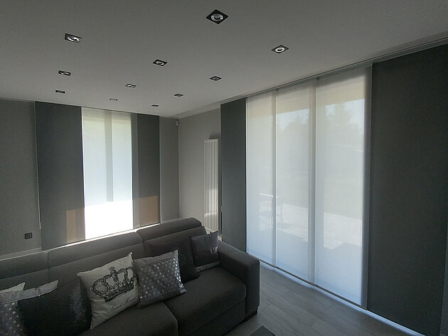 Znajdują zastosowanie jako osłony okienne jak i przy wydzielaniu odrębnych powierzchni w pomieszczeniach. Wielotorowa szyna umożliwia swobodne przesuwanie poszczególnych paneli.
