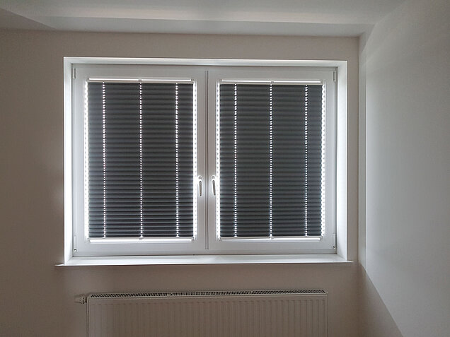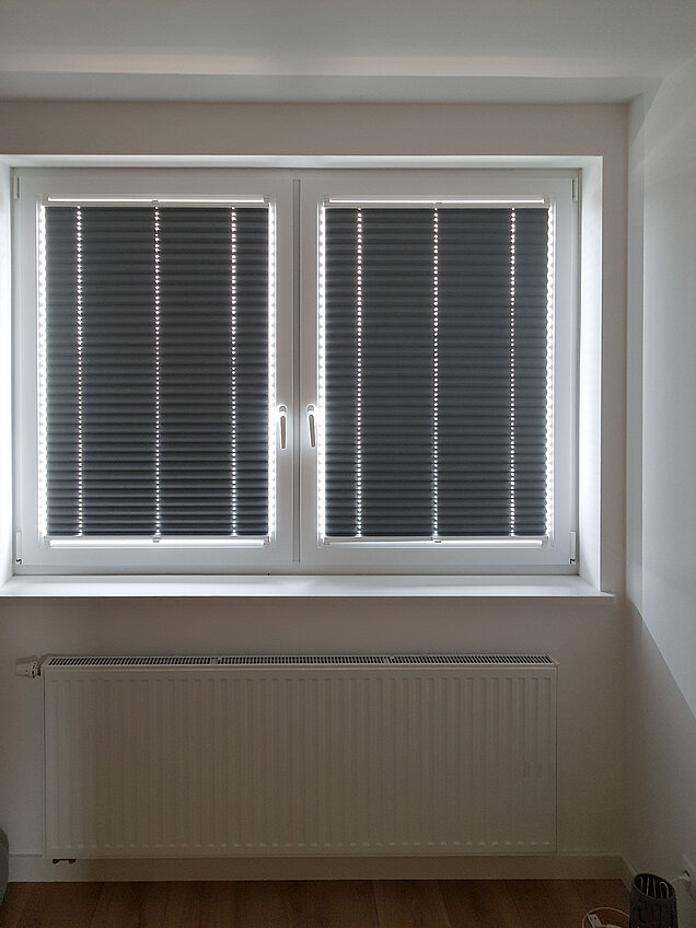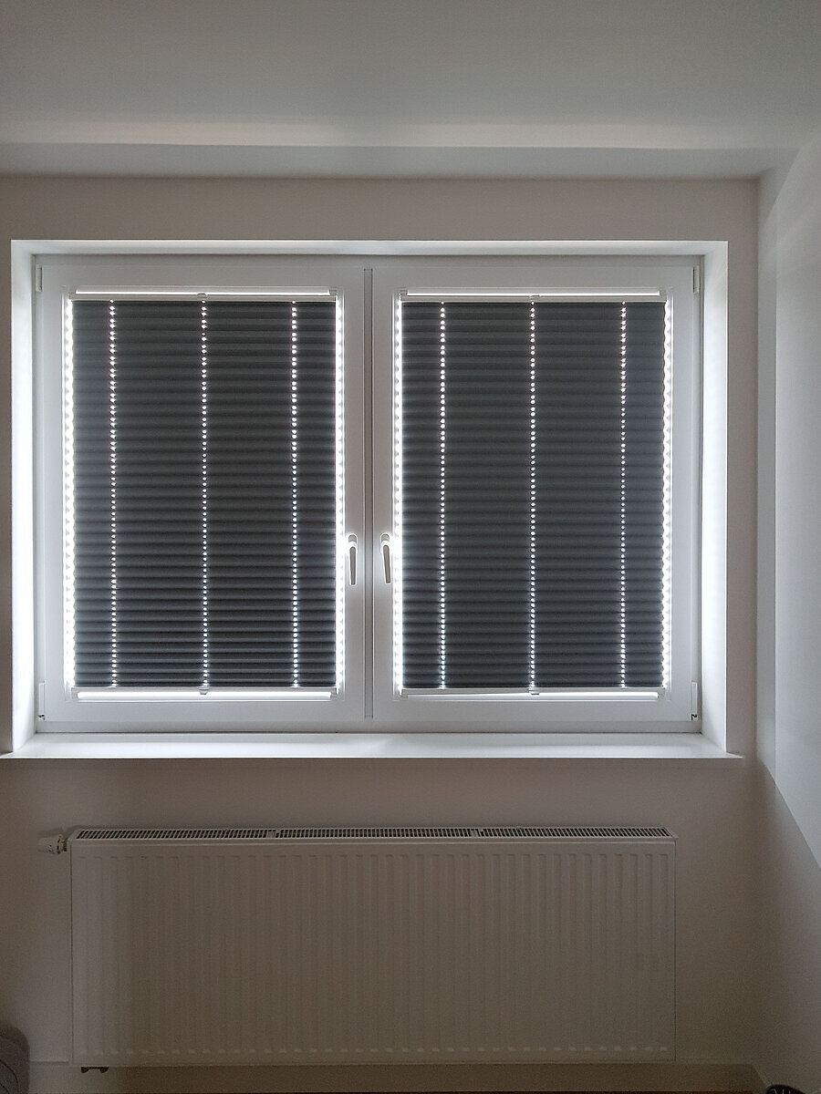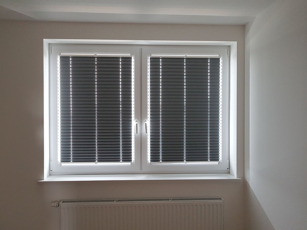Szare rolety wewnętrzne do biura dzień noc Warszawa