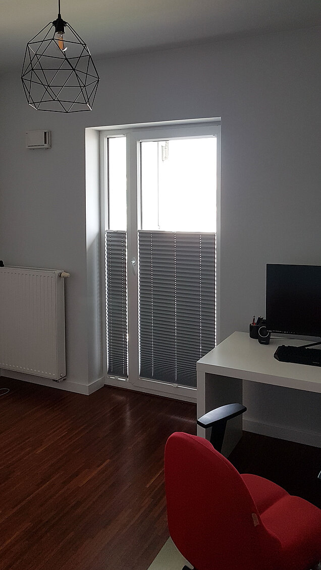 Szare rolety wewnętrzne do biura dzień noc Warszawa
