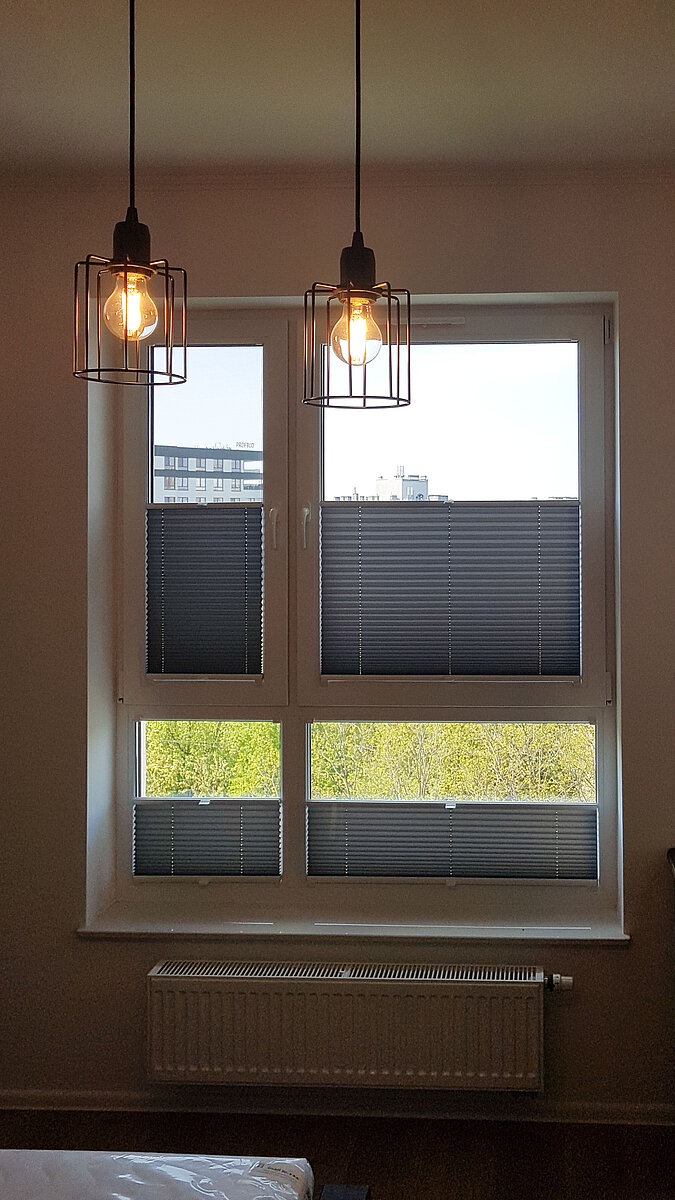Szare rolety wewnętrzne do biura dzień noc Warszawa