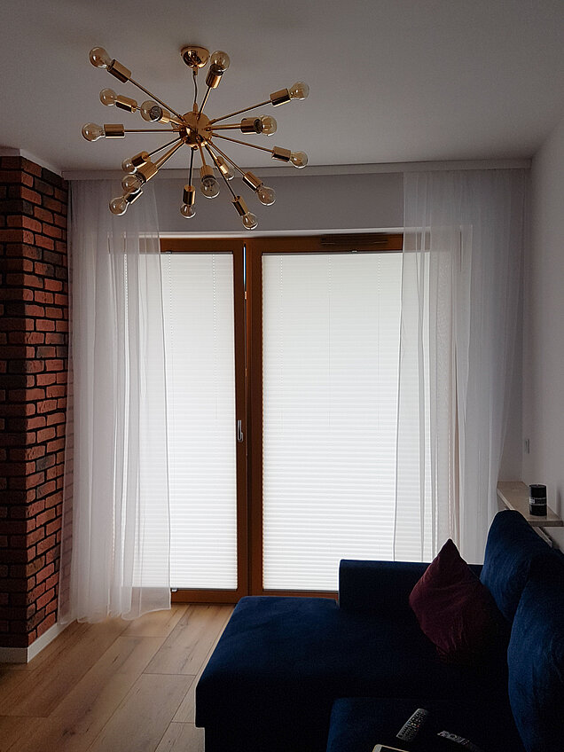 Rolety okienne w kasecie białej do nowoczesnego salonu Marki