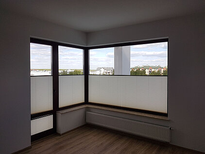 Szare rolety wewnętrzne do biura dzień noc Warszawa
