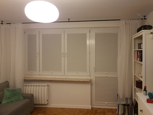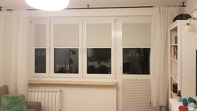Szare rolety wewnętrzne do biura dzień noc Warszawa