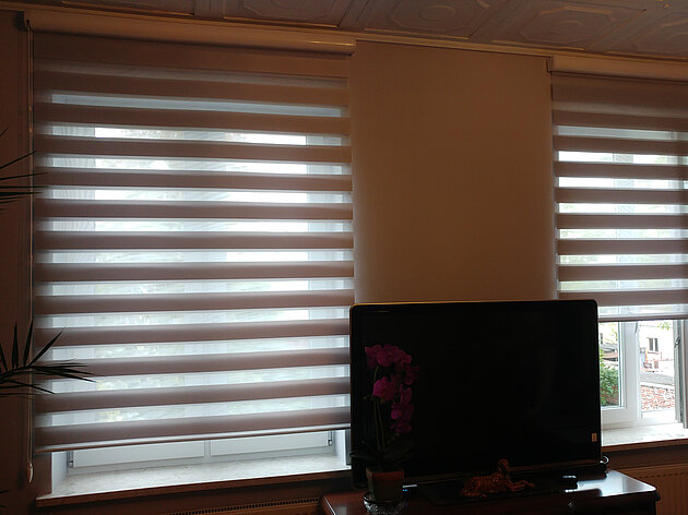 Rolety wewnętrzne dzień noc charakteryzują się swobodą regulacji przepływu światła, dzięki czemu można rozproszyć promienie słoneczne. W zależności od ułożenia rolety możemy zasłonić całkowicie okno lub pozostawić pożądany odstęp pomiędzy materiałami. Dzięki temu zachowujemy zarówno prywatność, jak i światło pod całkowitą kontrolą. Roleta dzień noc działa niemal identycznie jak żaluzja. Rolety dzień noc wykonane są z podwójnego materiału, zachodzącego na siebie w poziome pasy. Hitem tego roku są rolety duo, oparte na dwóch naprzemiennych materiałowych pasach. Każdy z pasów wykonany jest z innego materiału.