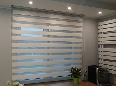 Nasza firma Dekoratornia Okien w swojej ofercie posiada szare rolety dzień noc w kasecie, które są najpopularniejszymi roletami jakie montujemy u klientów. Realizujemy sprzedaż, serwis oraz montaż rolet w Warszawie i okolicach. Posiadamy wszystkie dostępne kolory z palety RAL, w tym rolety dzień noc jasny szary, ciemny szary, szary melanż, biało szare, ciemno szare czy szaro zielone.