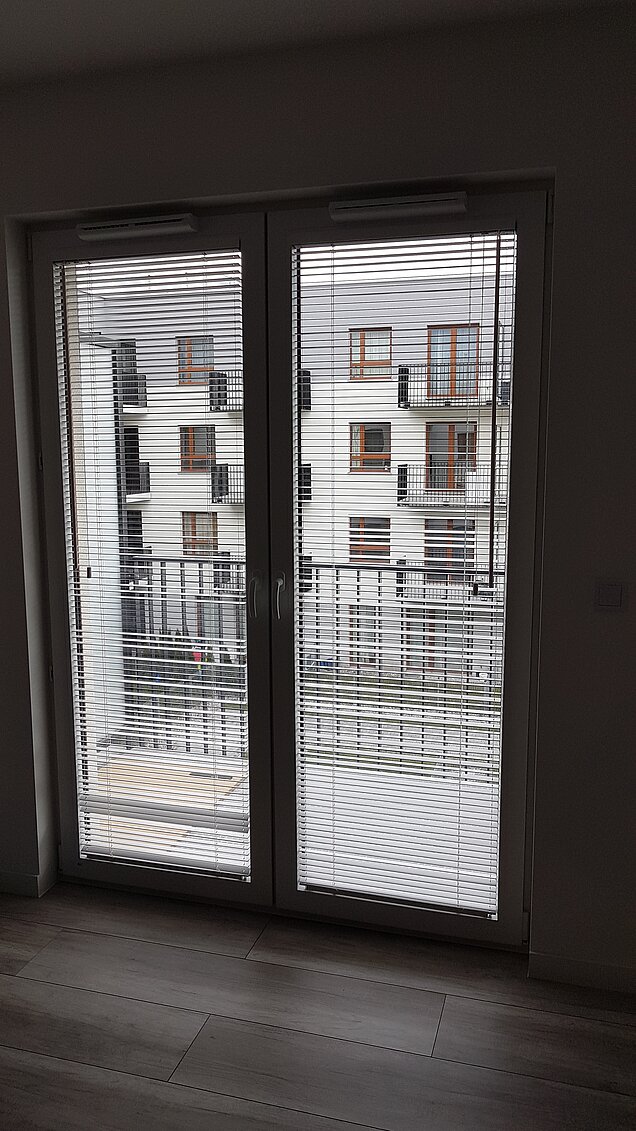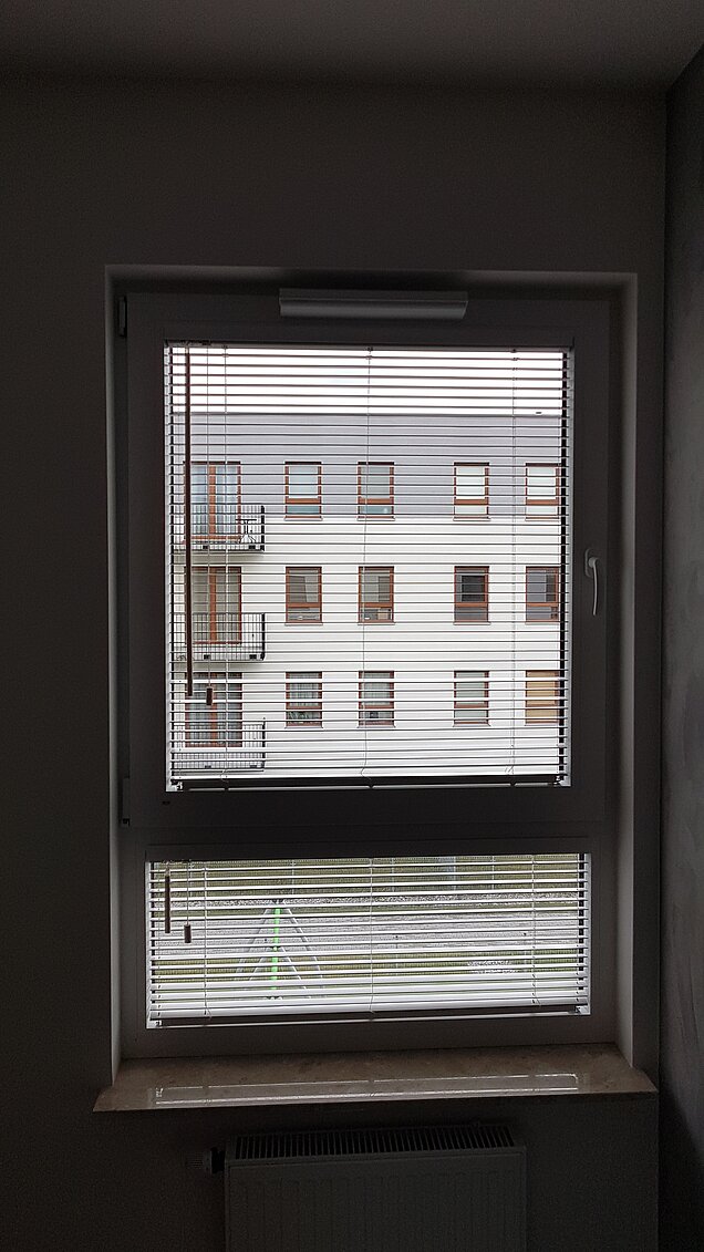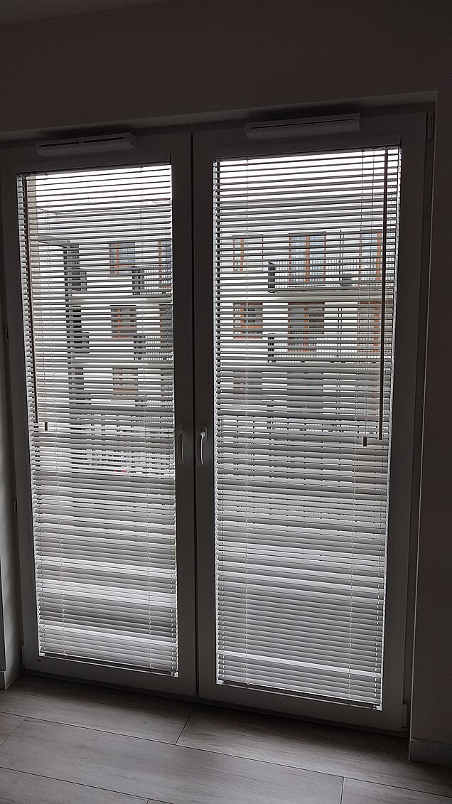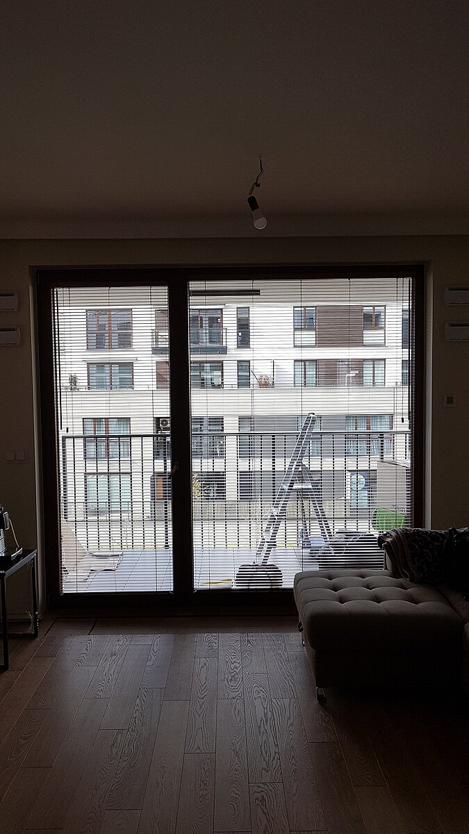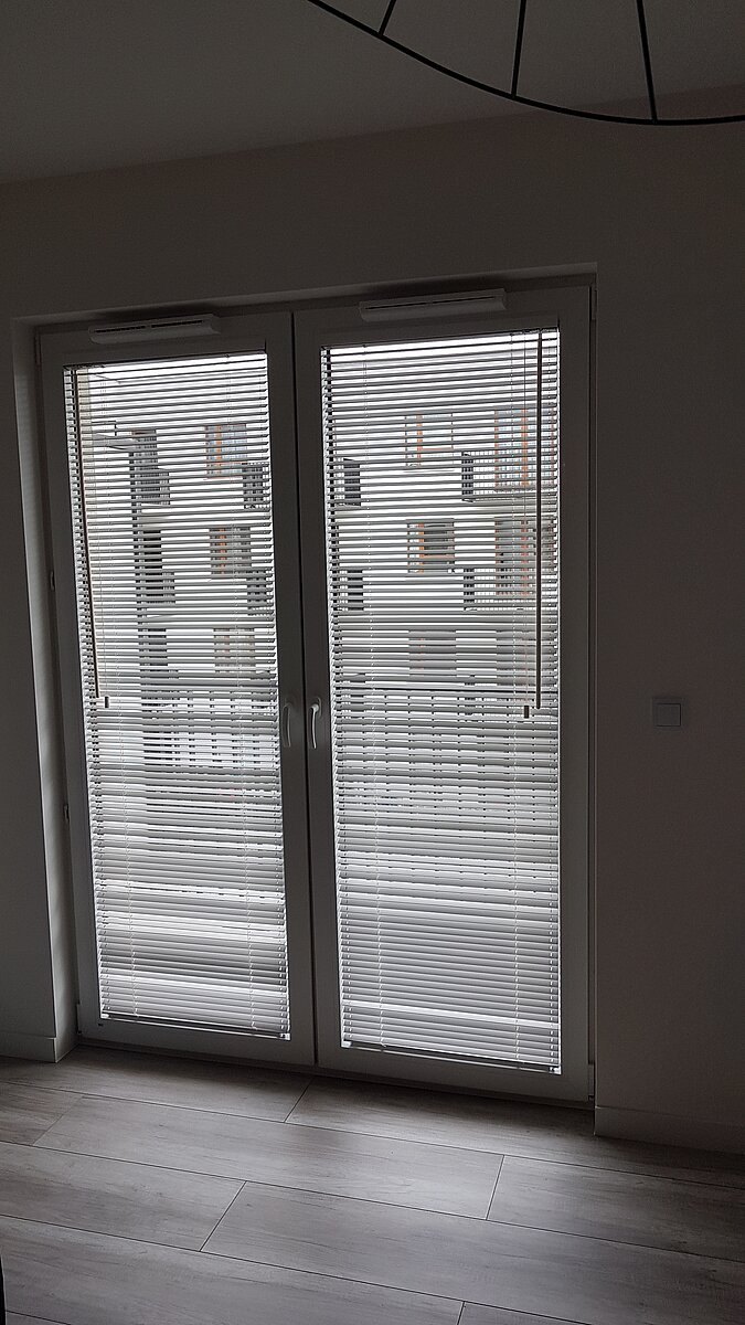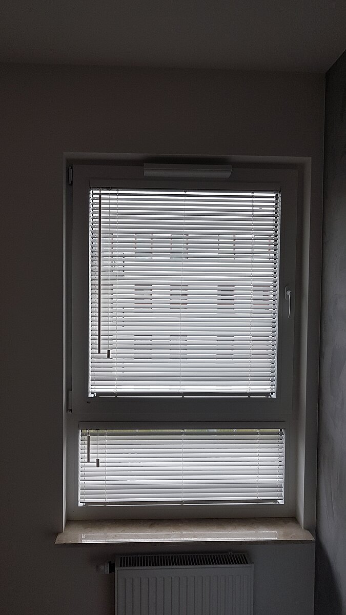 Szare rolety wewnętrzne do biura dzień noc Warszawa