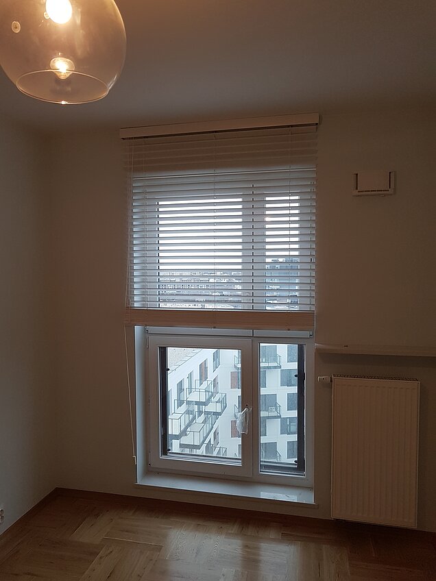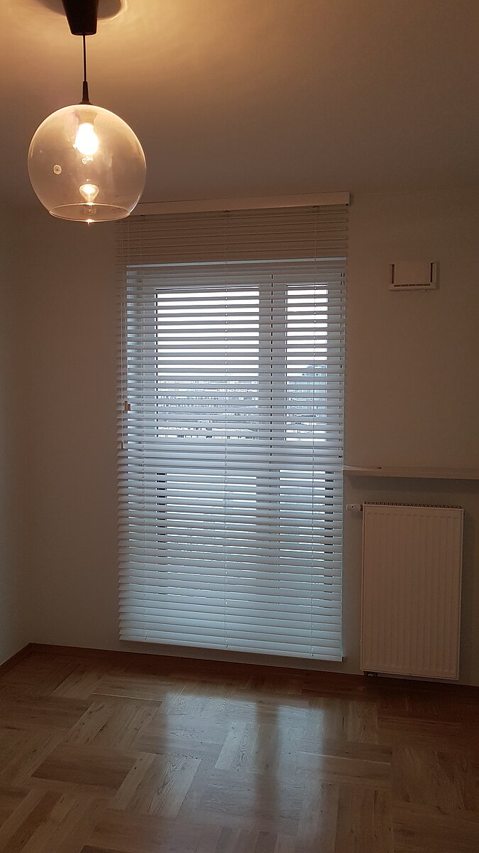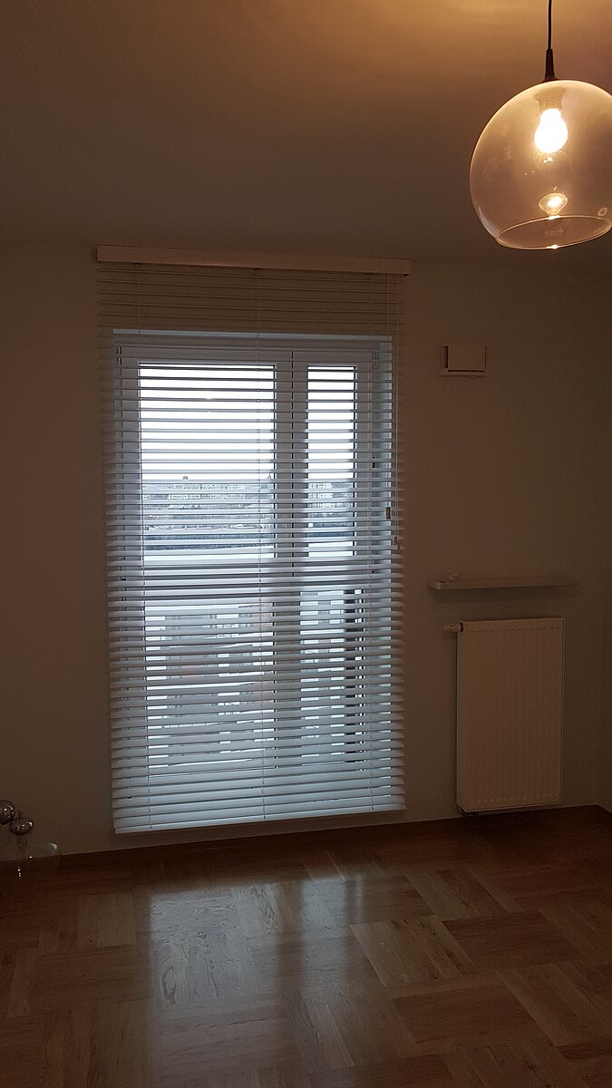 Szare rolety wewnętrzne do biura dzień noc Warszawa
