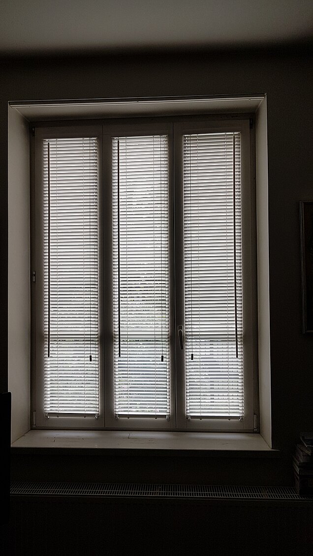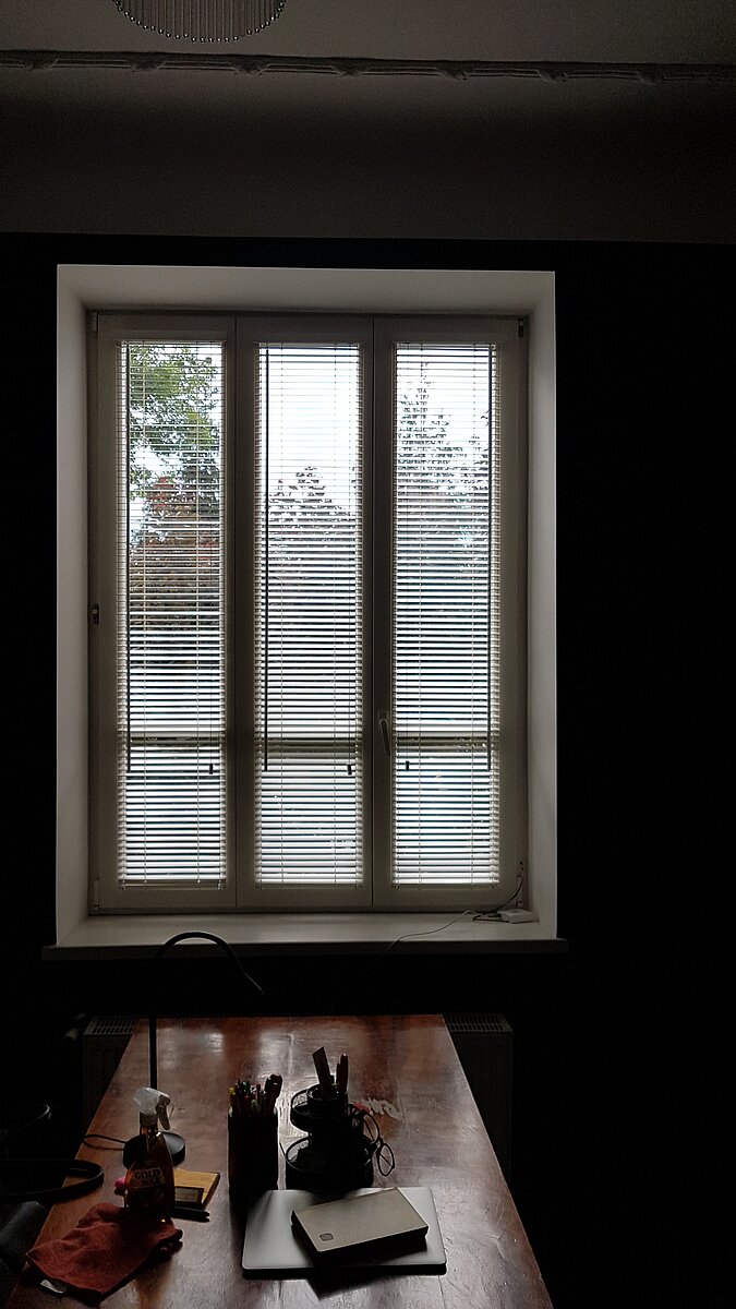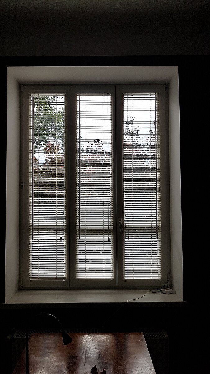 Szare rolety wewnętrzne do biura dzień noc Warszawa