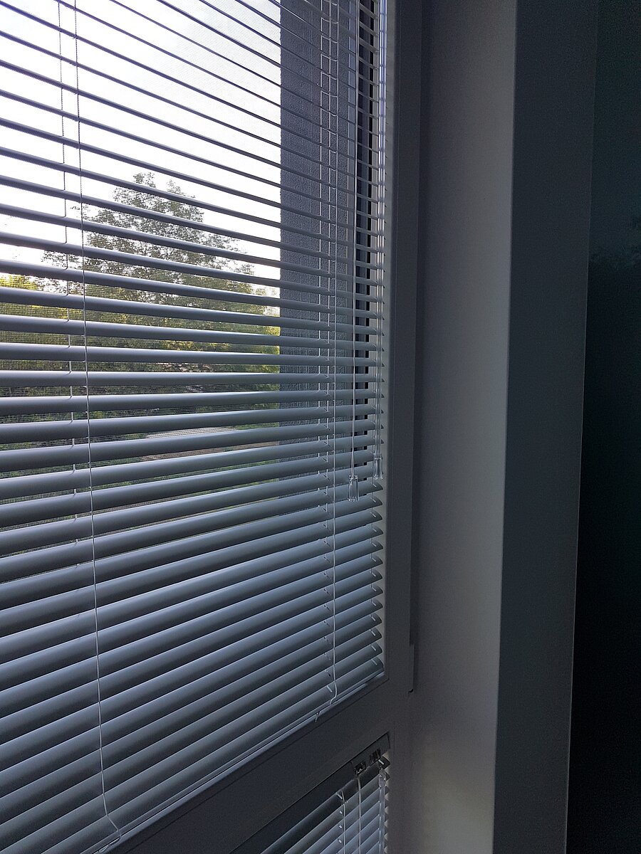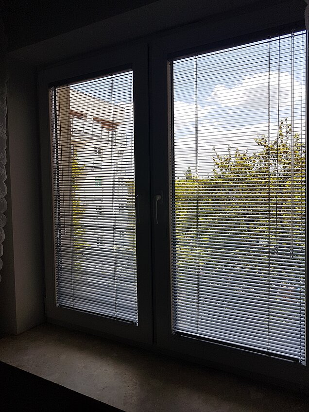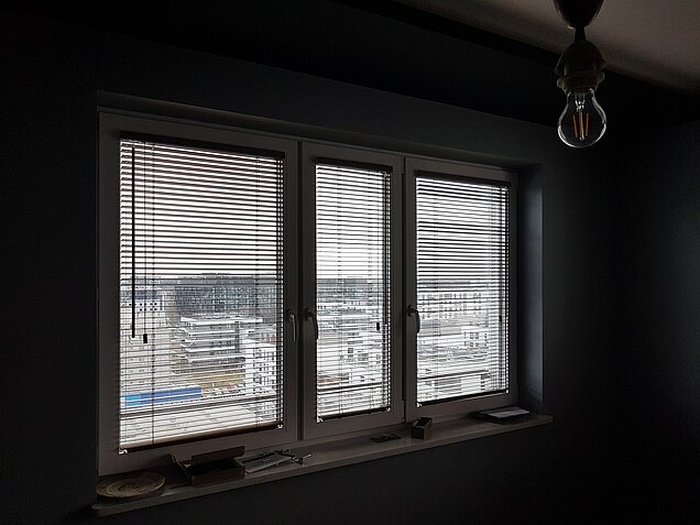 Szare rolety wewnętrzne do biura dzień noc Warszawa