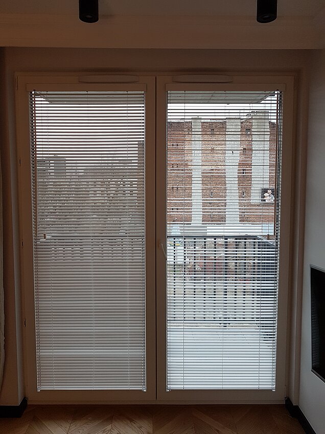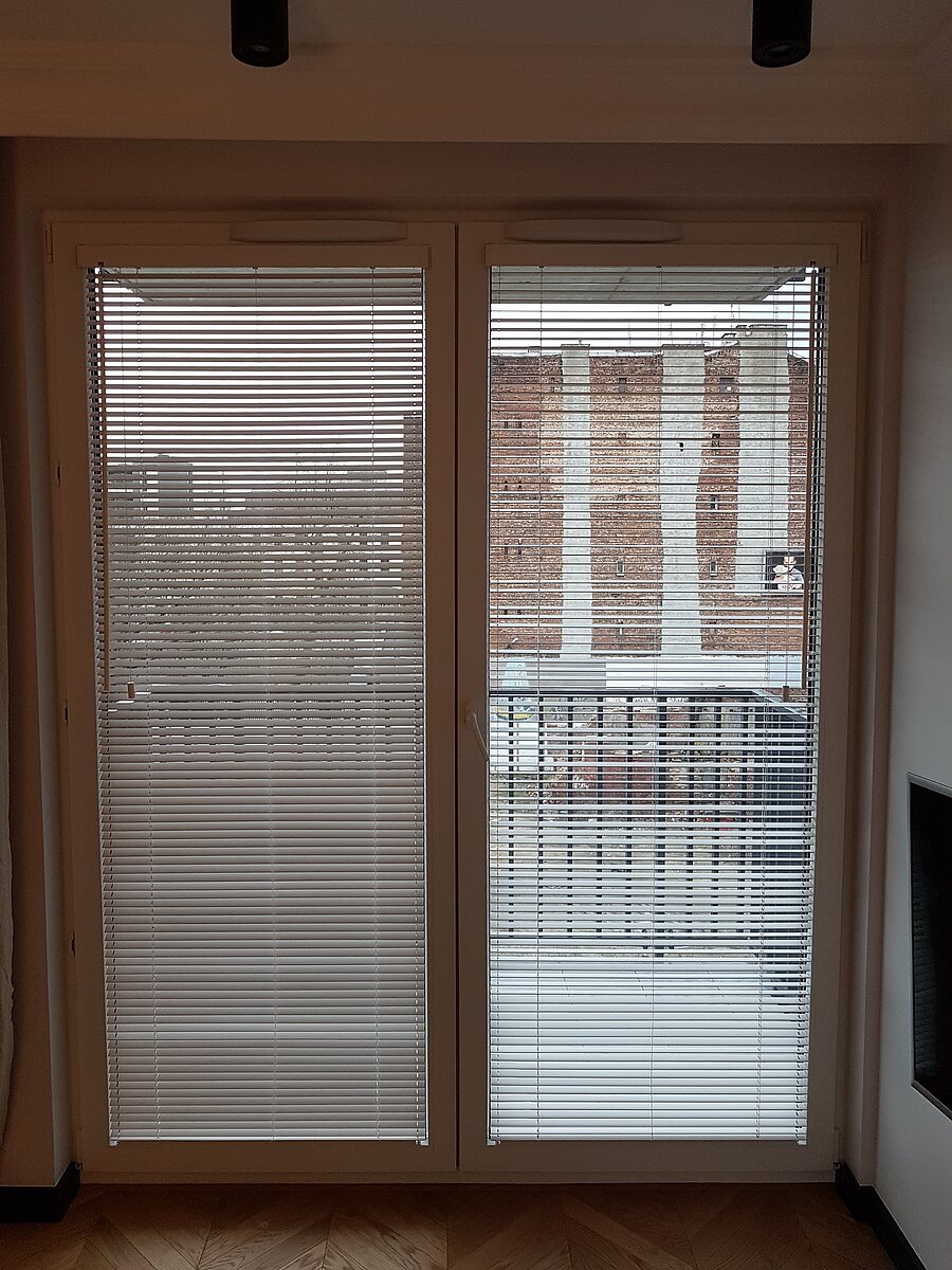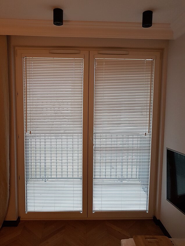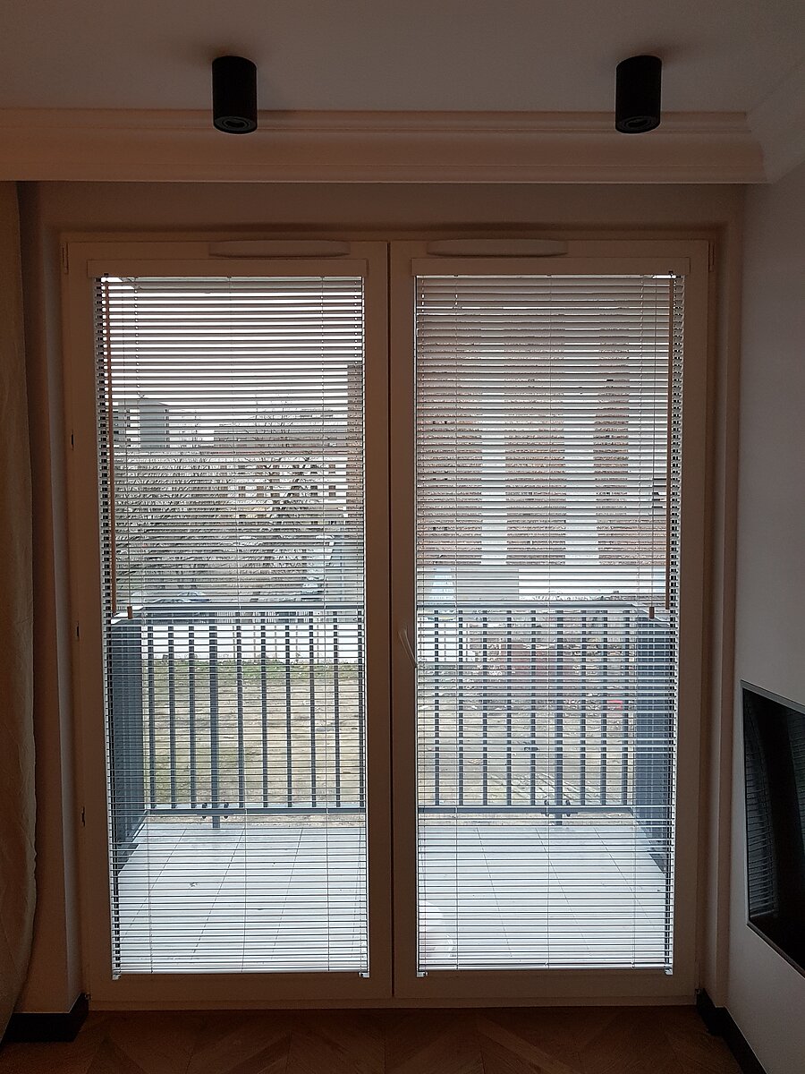 Szare rolety wewnętrzne do biura dzień noc Warszawa
