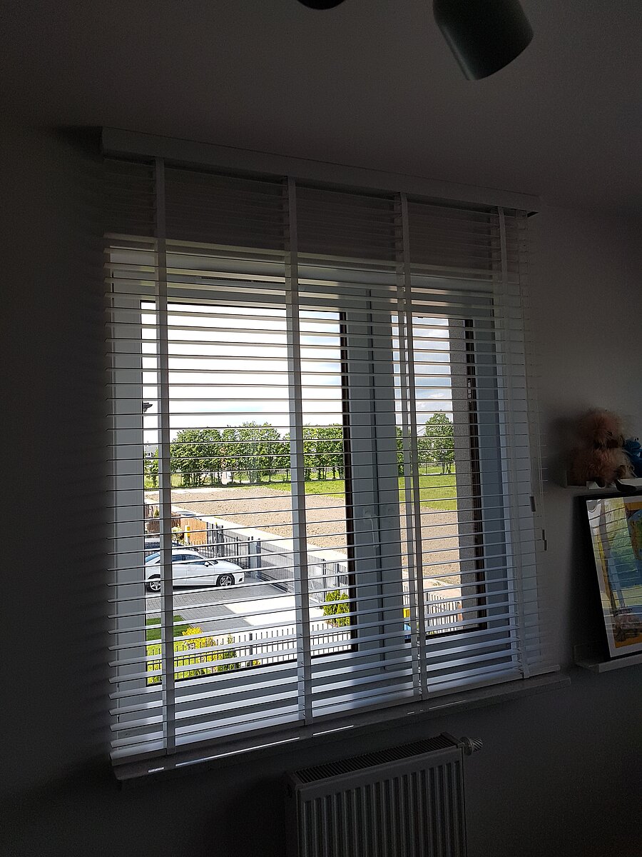 Szare rolety wewnętrzne do biura dzień noc Warszawa