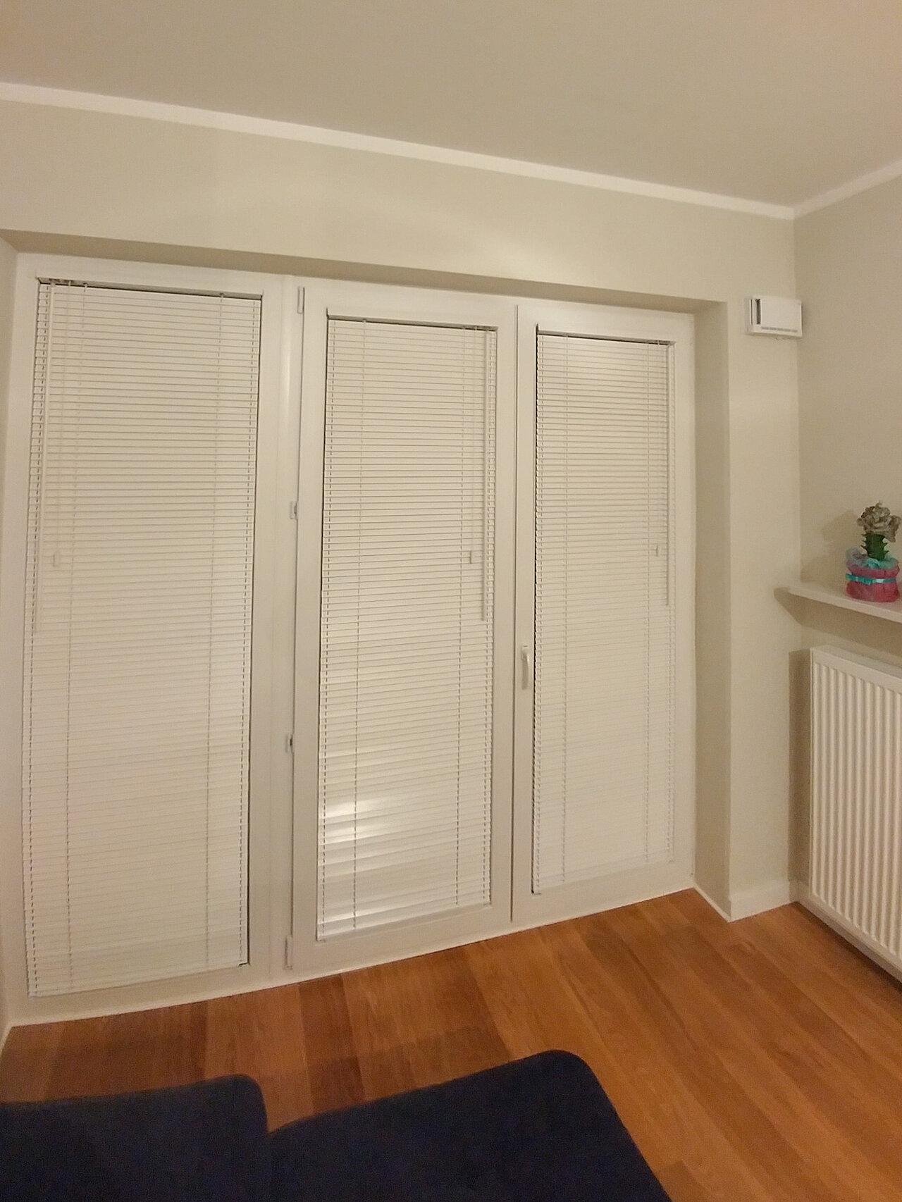 Szare rolety wewnętrzne do biura dzień noc Warszawa
