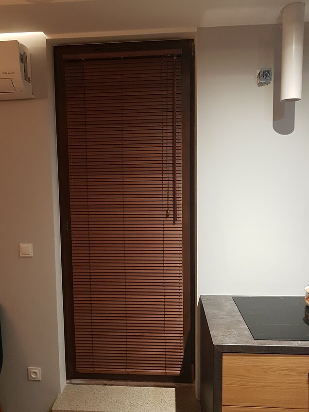 Szare rolety wewnętrzne do biura dzień noc Warszawa