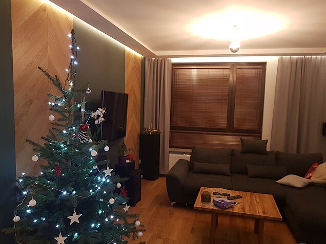 Rolety okienne w kasecie białej do nowoczesnego salonu Marki