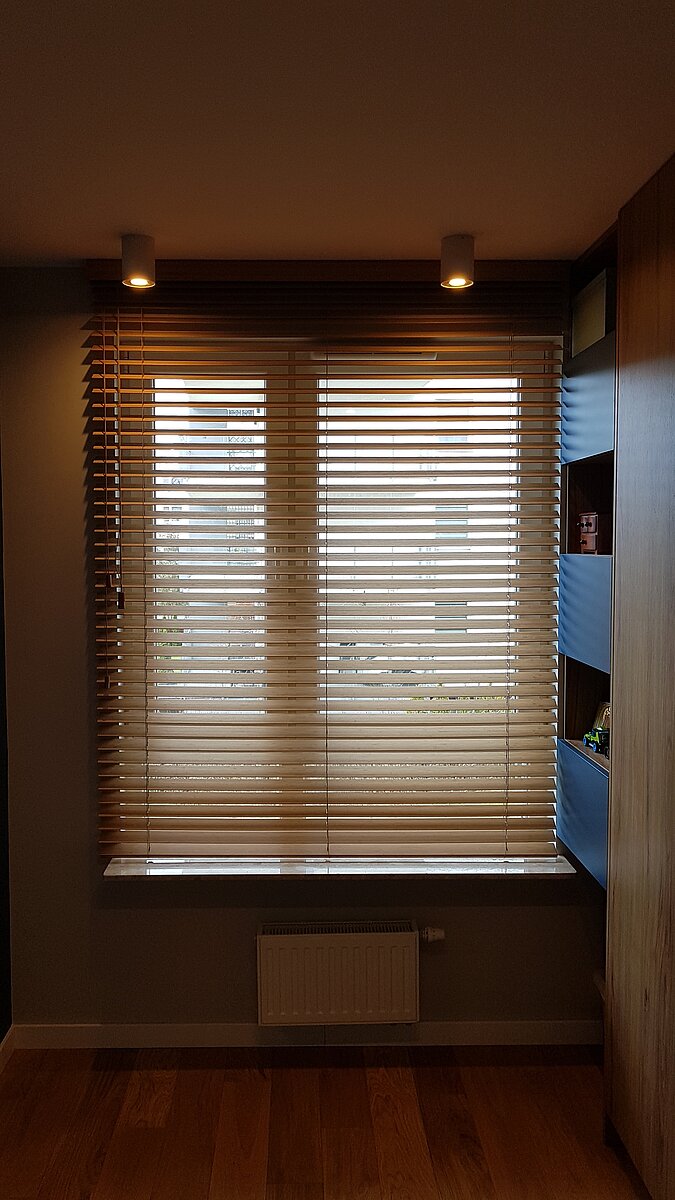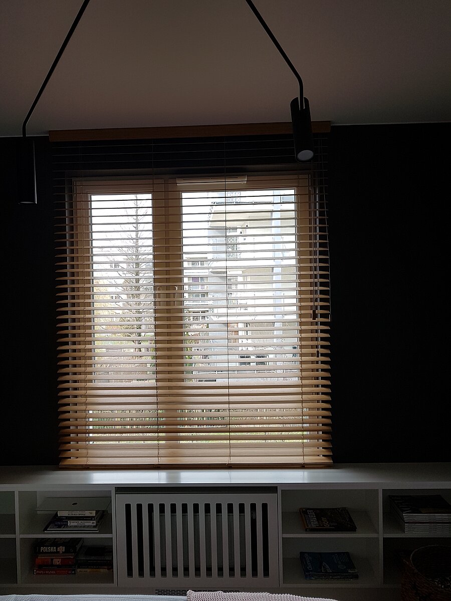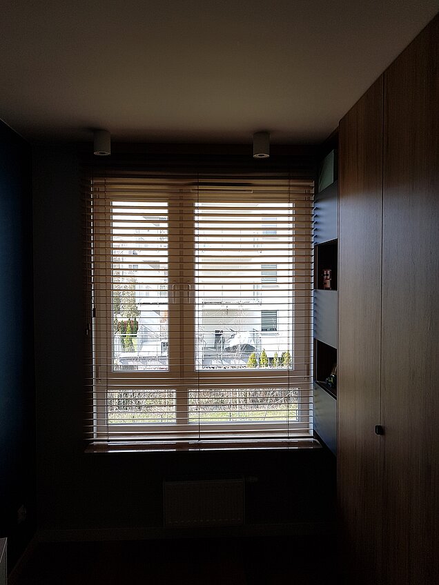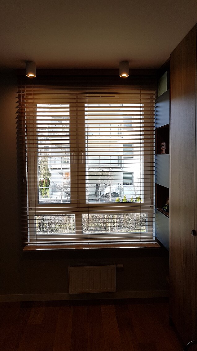Szare rolety wewnętrzne do biura dzień noc Warszawa