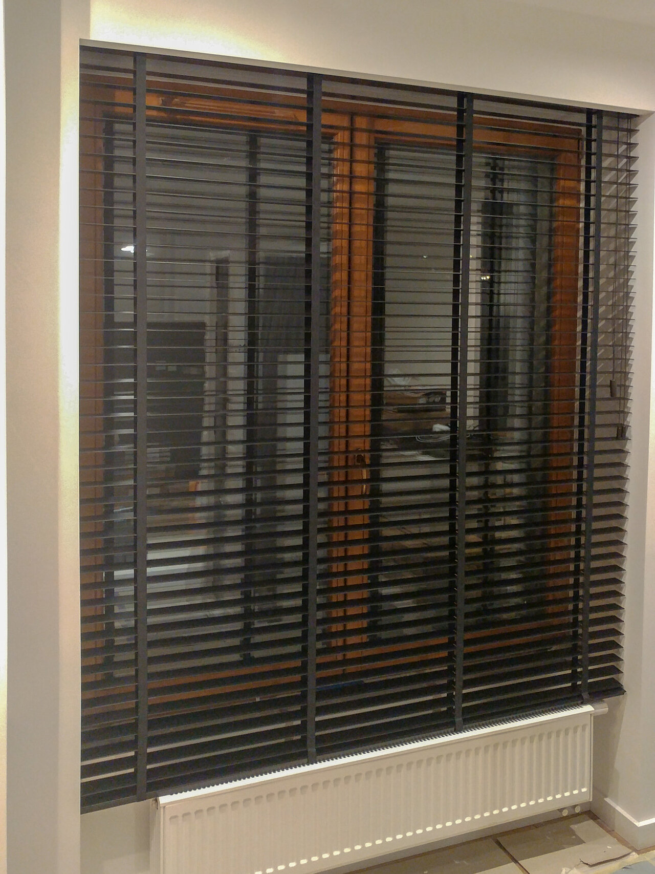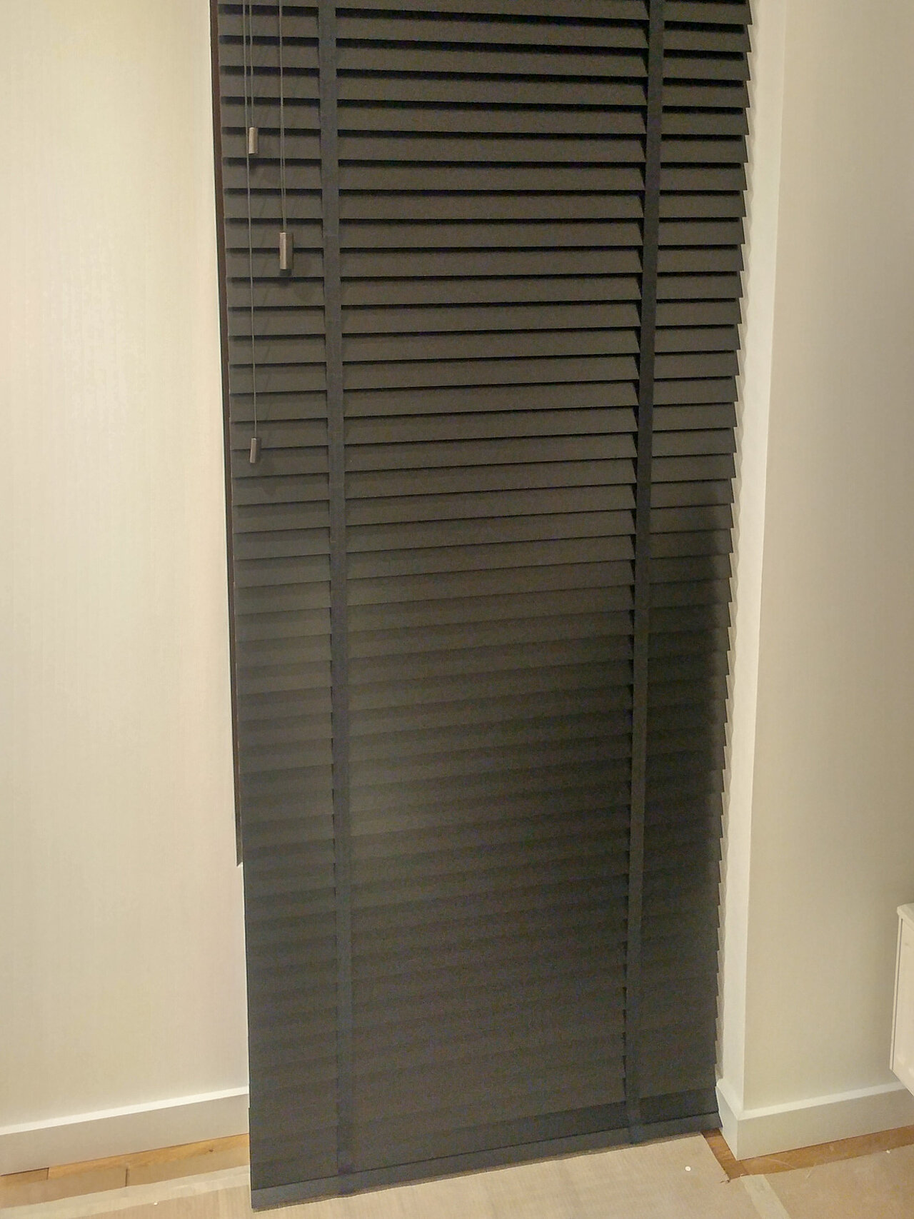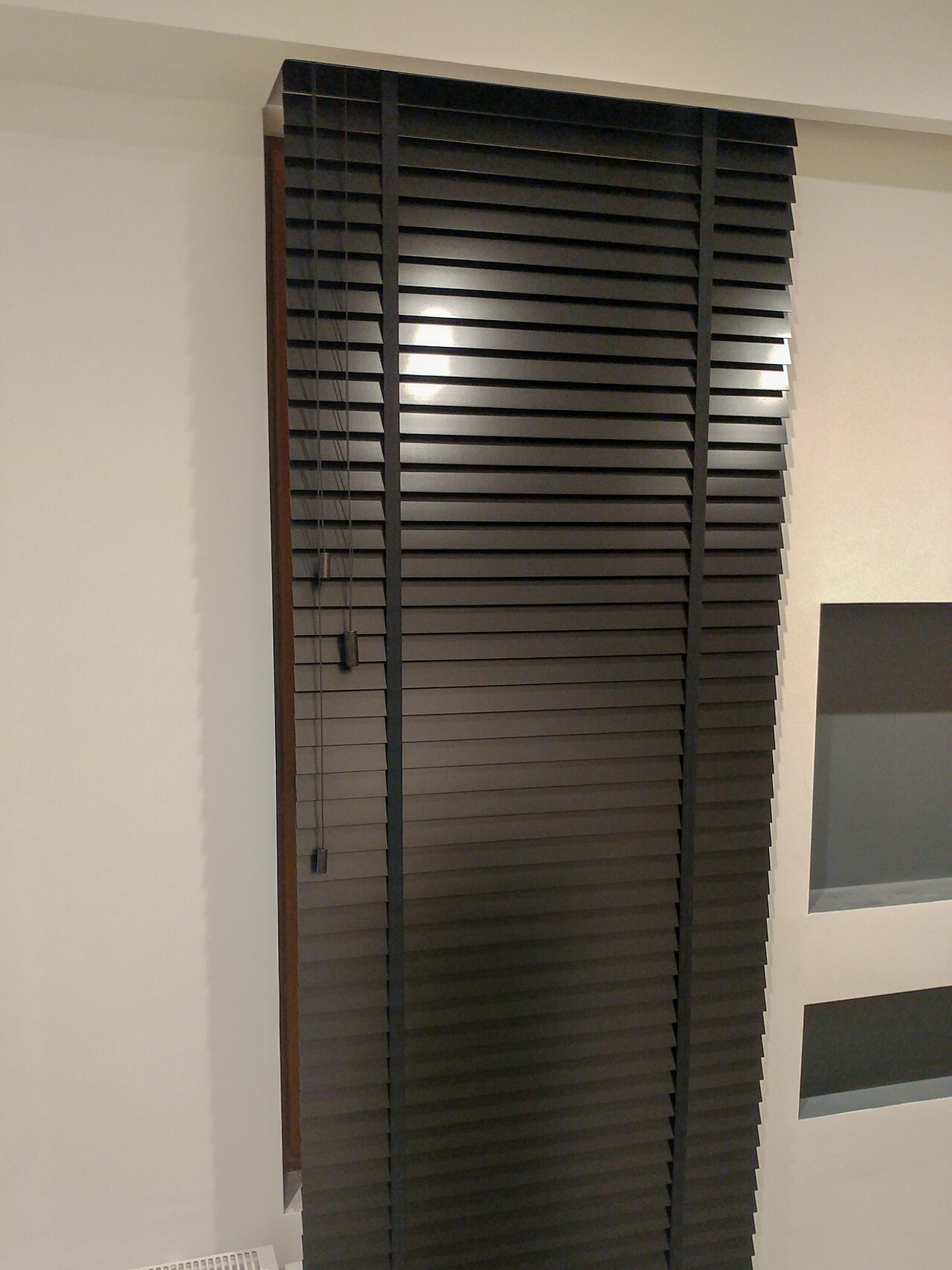 Szare rolety wewnętrzne do biura dzień noc Warszawa