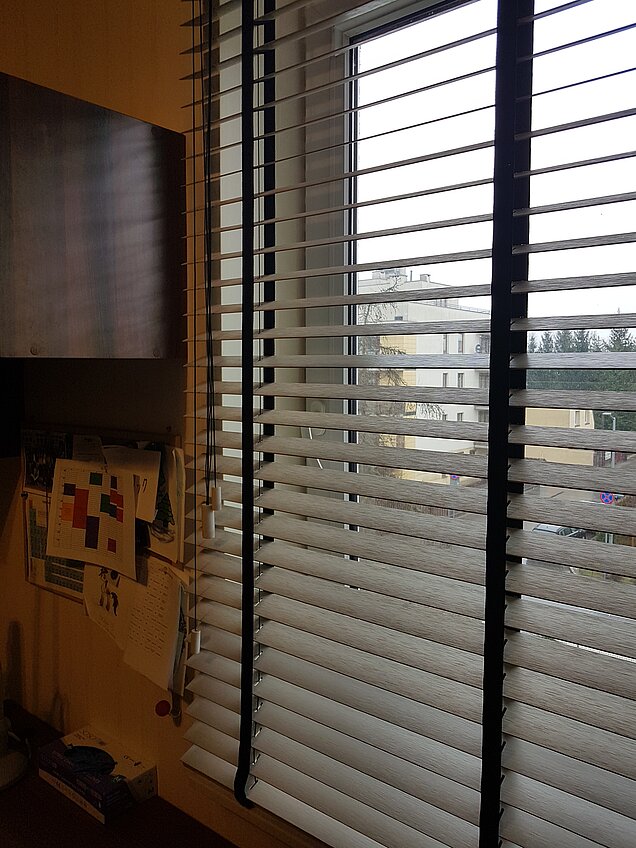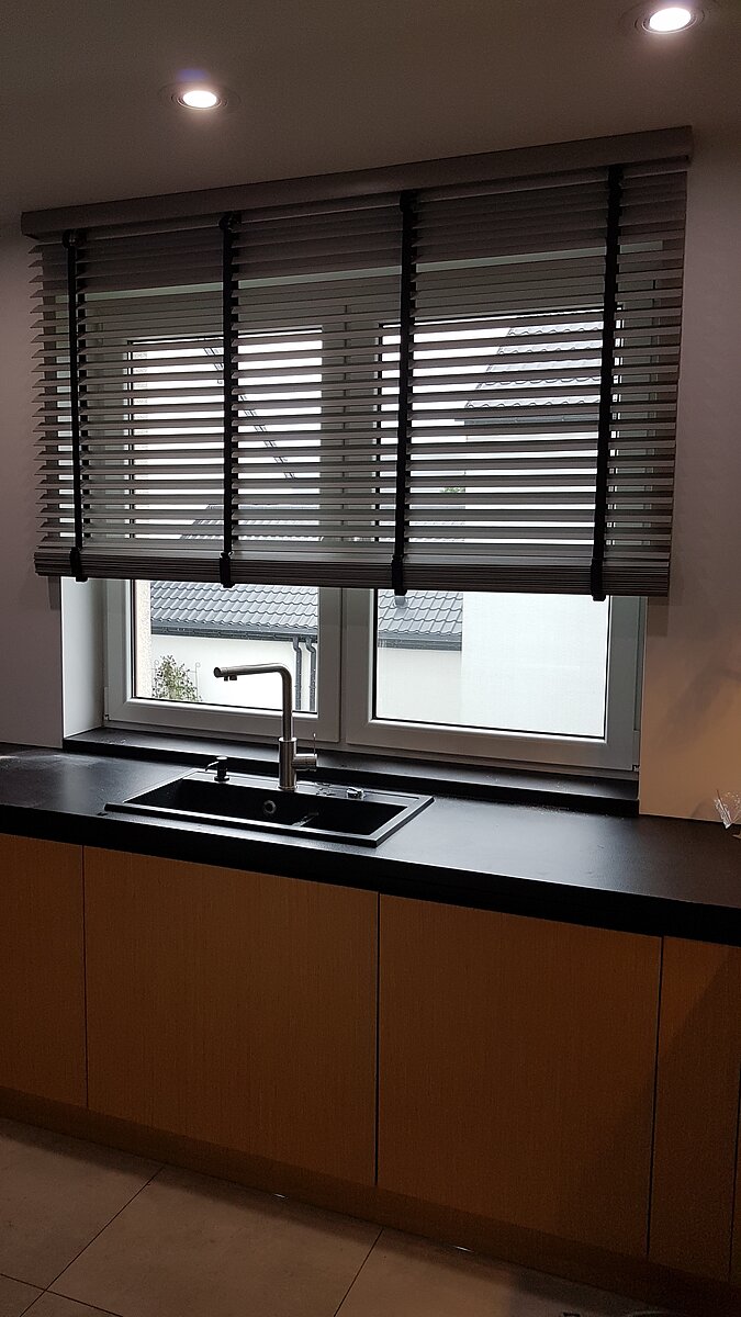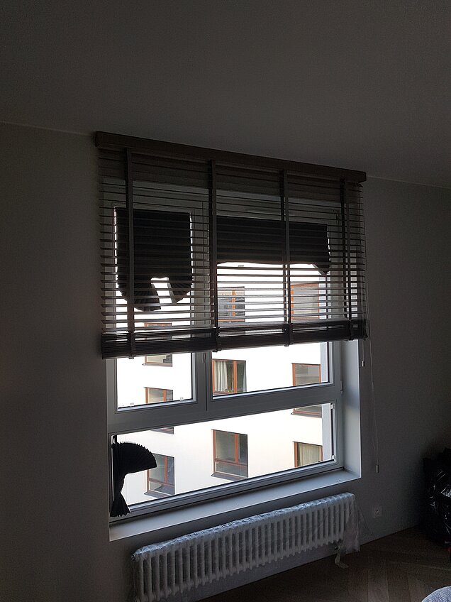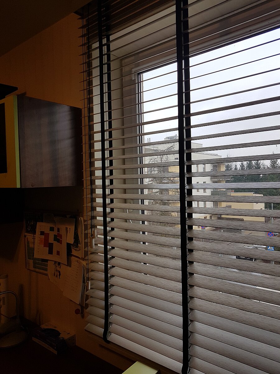 Szare rolety wewnętrzne do biura dzień noc Warszawa