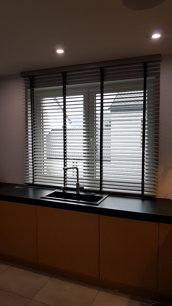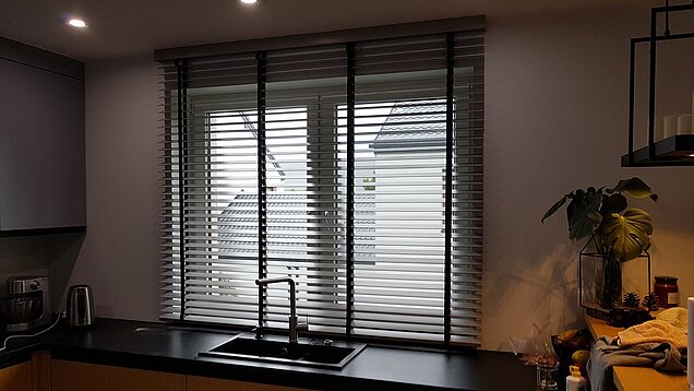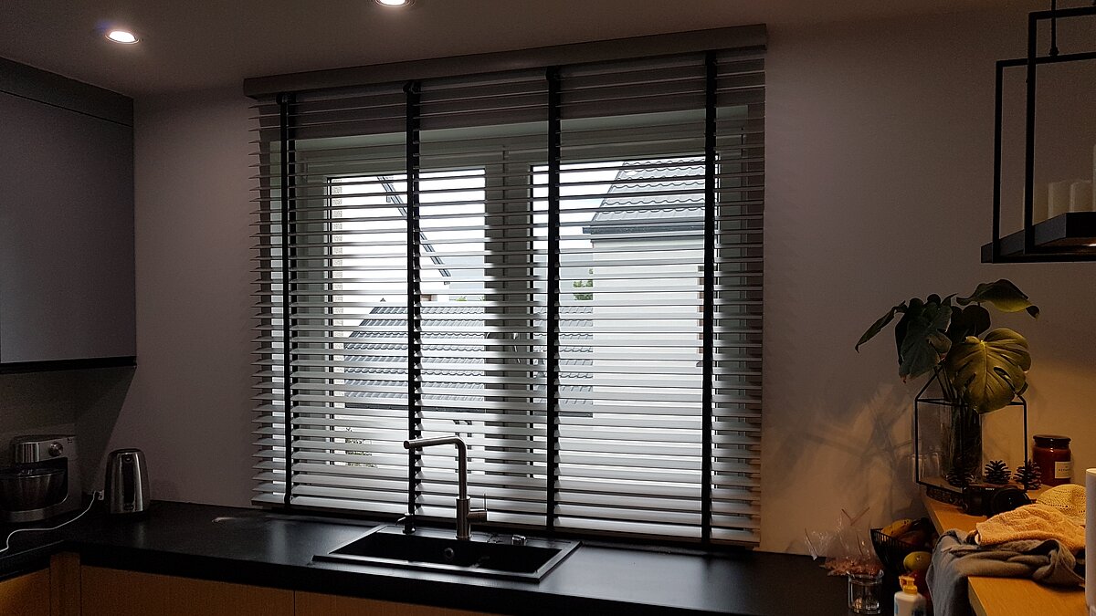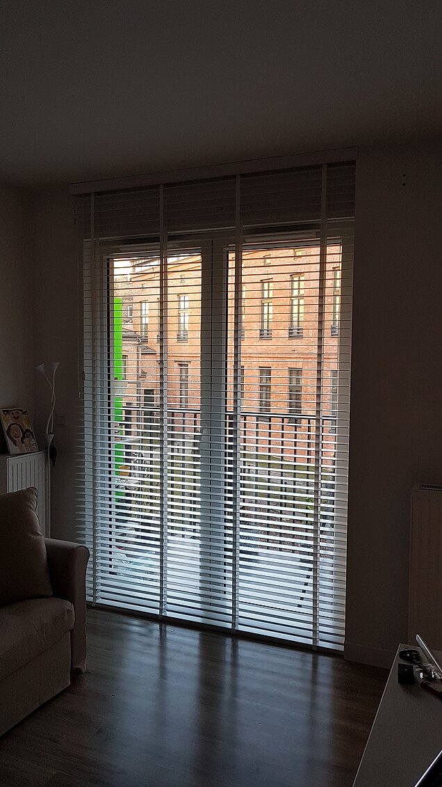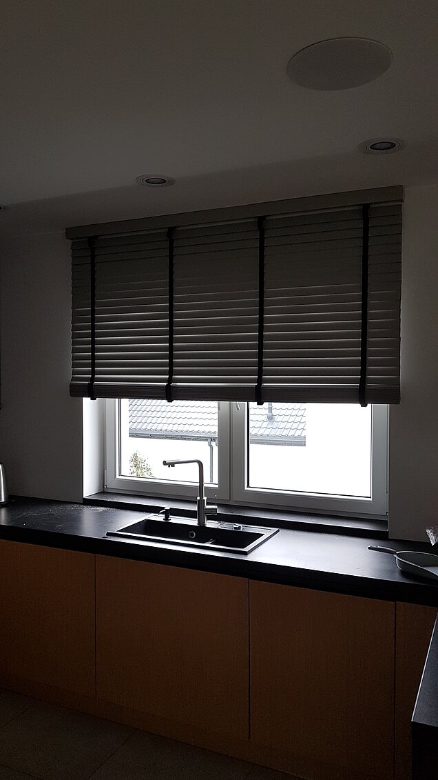 Szare rolety wewnętrzne do biura dzień noc Warszawa