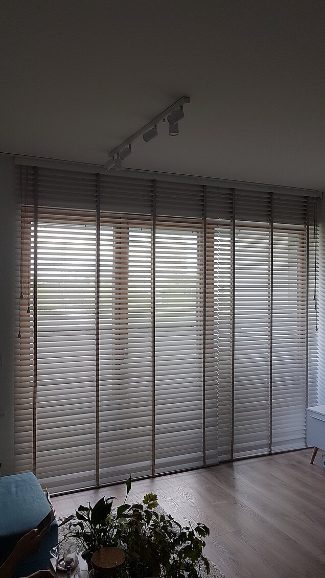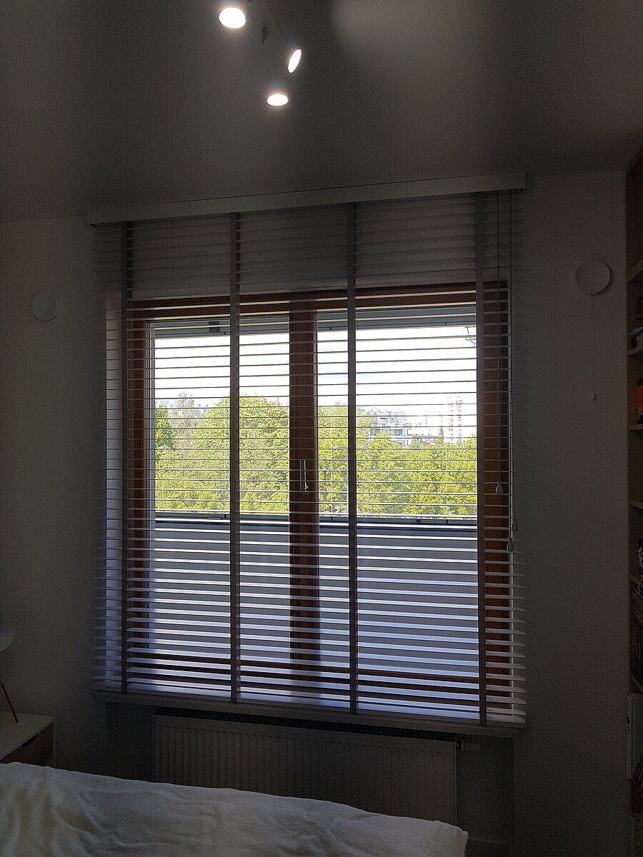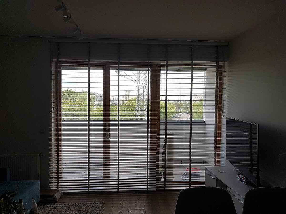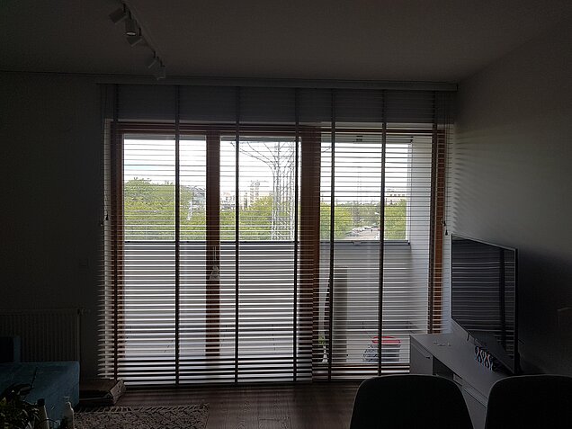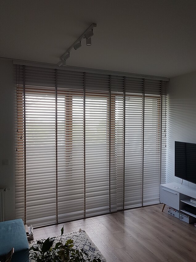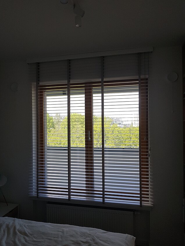 Szare rolety wewnętrzne do biura dzień noc Warszawa