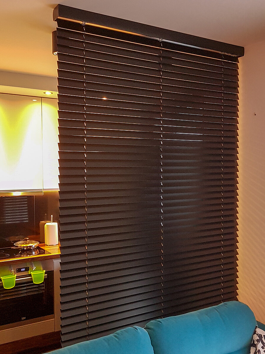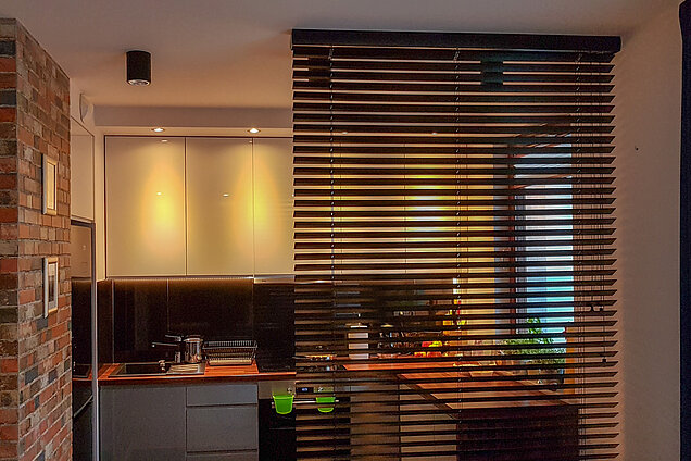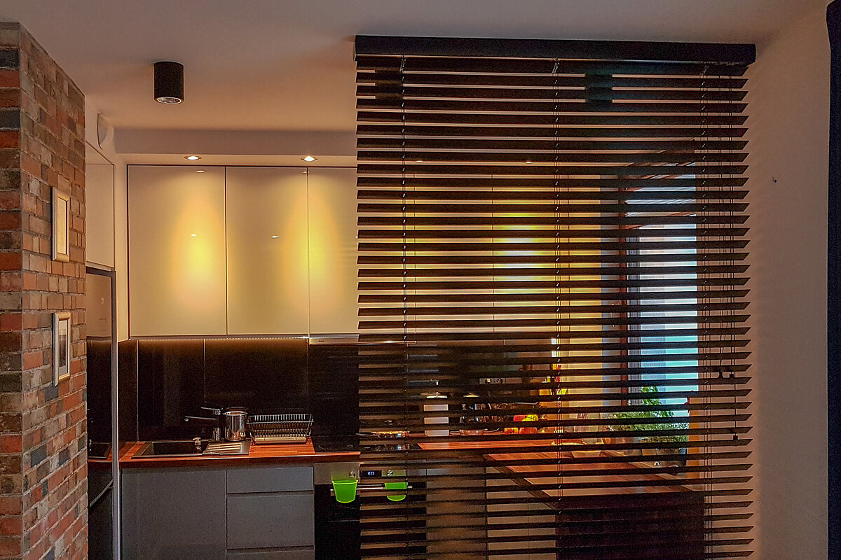 Szare rolety wewnętrzne do biura dzień noc Warszawa