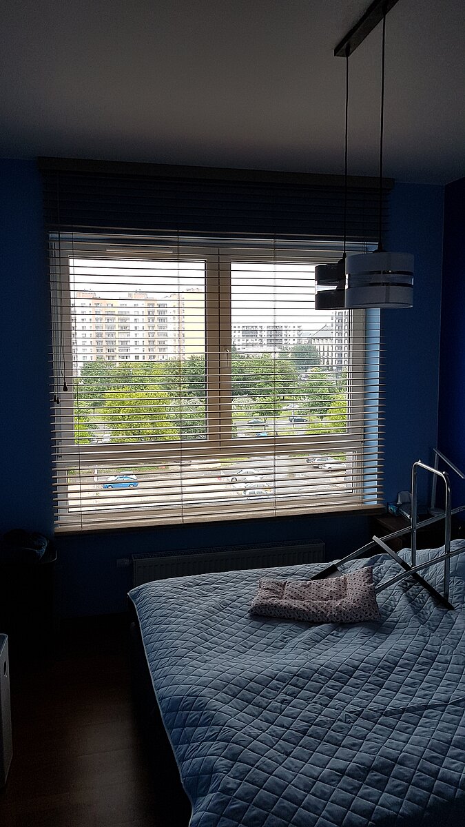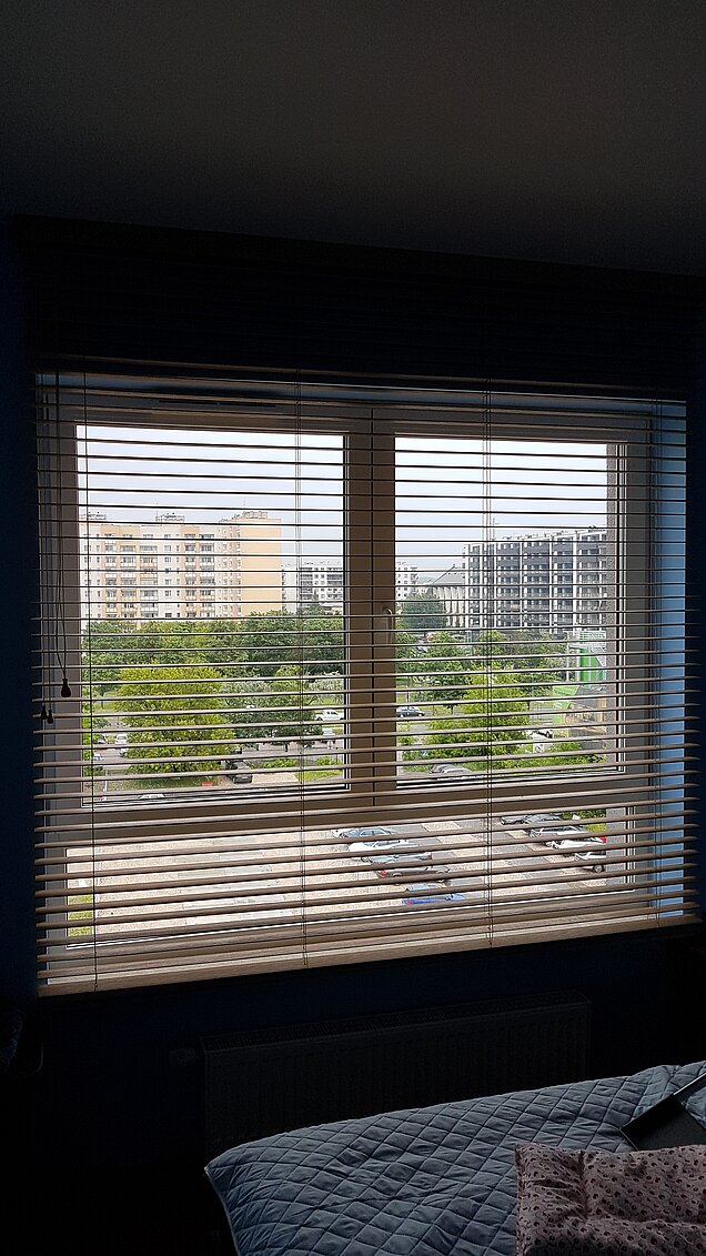 Szare rolety wewnętrzne do biura dzień noc Warszawa